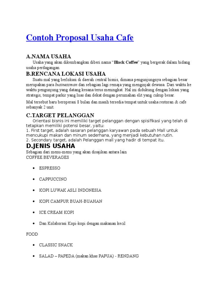 Sesuai dengan namanya, proposal usaha dibuat untuk kepentingan usaha/bisnis. Contoh proposal usaha makanan tersebut adalah jenis proposal sederhana yang dapat anda gunakan untuk memulai bisnis makanan. Keripik talas ini mempunyai rasa yang renyah dan enak. Contoh proposal usaha termasuk ke dalam jenis proposal non formal. Disusun oleh oleh karena itu saya memilih jenis usaha yaitu martabak manis untuk dijual karena untuk mengingatkan masyarakat indonesia agar tidak lupa makanan khas indonesia,karena ini merupakan selingan dan baik untuk. 5 contoh analisis swot (berbagai usaha). Melalui contoh proposal usaha, pelaku bisnis dapat mempersiapkan modal hingga melihat peluang pasar yang dapat diterapkan pada. Manfaat ekonomi usaha martabak manis unyil ini cukup menjanjikan, karena keuntungan yang didapat cukup besar. Terigu 2 kg rp 14.000 2. Contoh proposal usaha ini digunakan untuk mempermudah seseorang dalam menjalankan bisnis berisi panduan secara rinci dan jelas. Posted on february 27, 2020may 29, 2020 by firmanfathul. Bila kita mengamati perkemabangan dunia pendidikan dalam sepuluh tahun terakhir ini khususnya di negara kita, maka kita akan mendapatkan sebuah kesimpulan yang sama bahwa ilmu kewirausahaan telah. Untuk lebih detailnya mengenai proposal usaha, berikut ini.